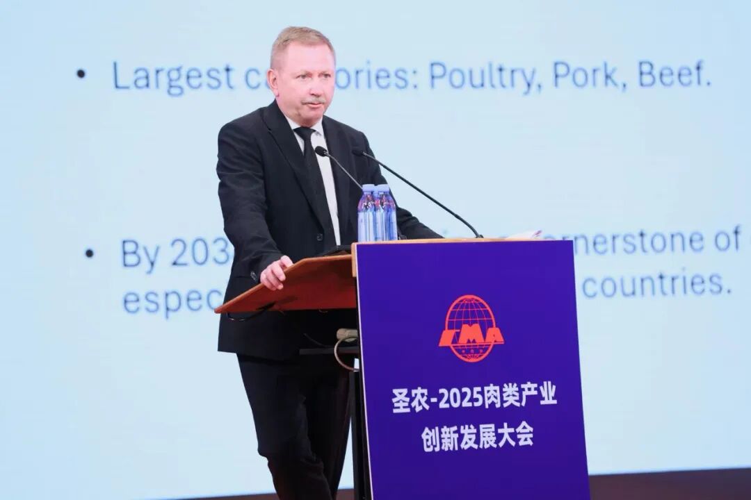 加拿大驻华使馆农业参赞(食品安全和动物健康)罗飞犇(Benjamin Roffey)在致辞中表示,加拿大作为全球重要的农业生产国和出口国,始终高度重视与中国在农业领域的合作。他指出,中国是加拿大重要的贸易伙伴,双方在肉类产业领域已建立起长期、稳定的合作关系。未来,加方期待与中方继续深化合作,进一步拓展肉类贸易的深度与广度,并通过持续密切的沟通协调,共同应对行业挑战,提升贸易便利化水平。他坚信,在双方的共同努力下,加中两国肉类行业的合作将不断深化,为全球肉类行业的可持续与高质量发展注入新的活力。