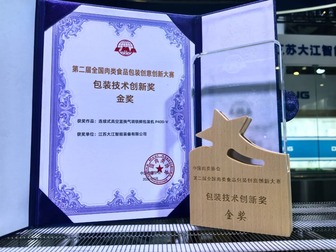 本期介绍的是荣获本届大赛“包装技术创新奖”金奖的作品——由江苏大江智能装备有限公司报送的“连续式真空置换气调锁鲜包装机P400-V”。